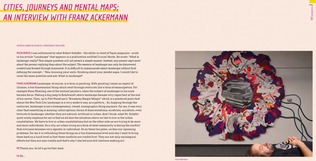 | RES Art World / World Art, December 2010 | Pelin Derviş, “Cities, Journeys and Mental Maps; An Interview with Franz Ackermann,” p. 2-19. |