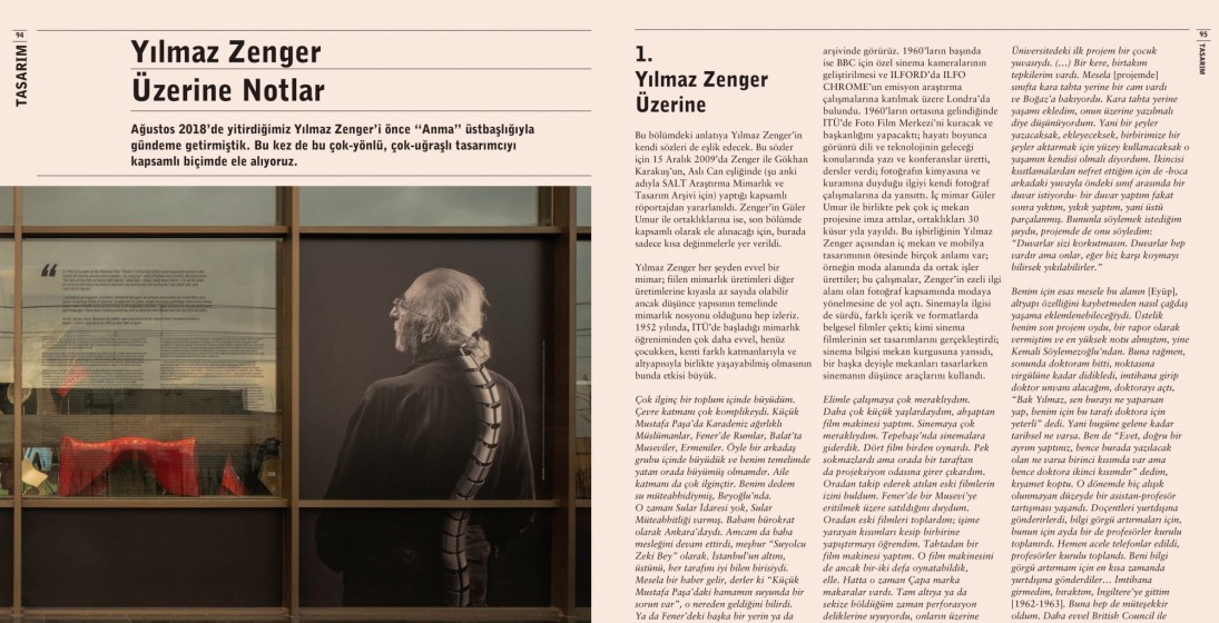 | Arredamento Mimarlık 329, March 2019 | Pelin Derviş, “Yılmaz Zenger Üzerine Notlar”, p. 94-111: |